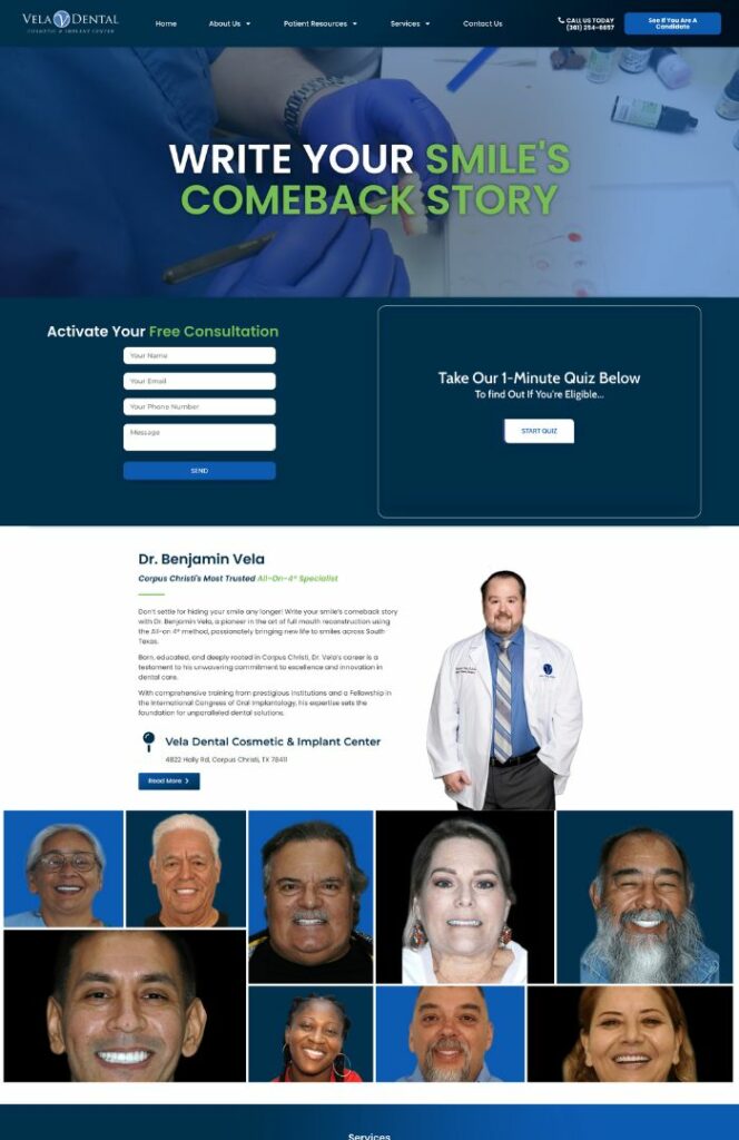 When Vela Dental from Corpus Christi, TX came on board with DentalNation, they were in need of a new brand and a comprehensive marketing strategy. Immediately when signing on board with DentalNation, they received a new website with fresh photography and tv commercials. They got immediate results in their first month of marketing.